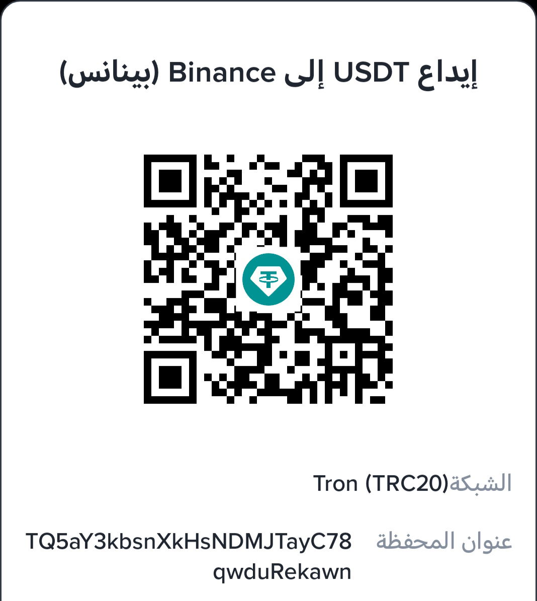 عنوان المحفظة العامة لستلام ( Trc20)USDT